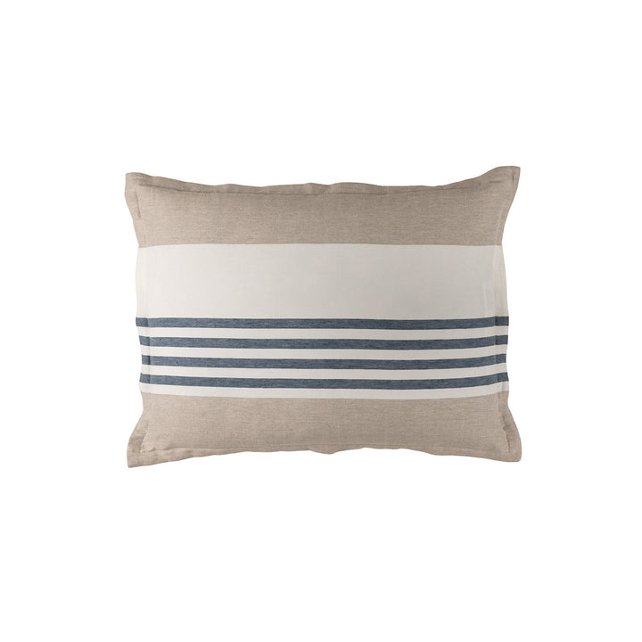 The Newport Standard Pillow is made with White, Natural, and Blue striped Cotton Linen. A pillow insert is included.