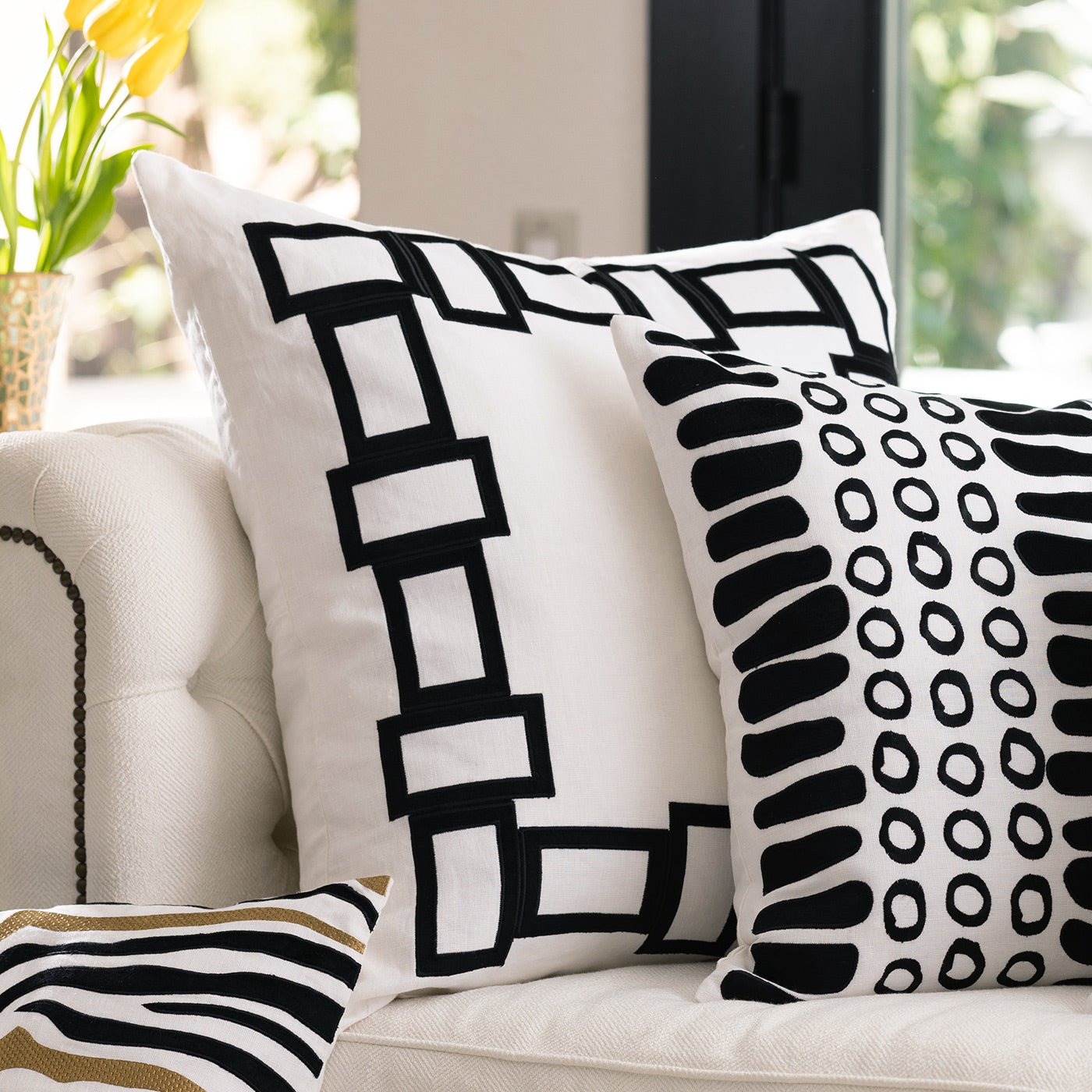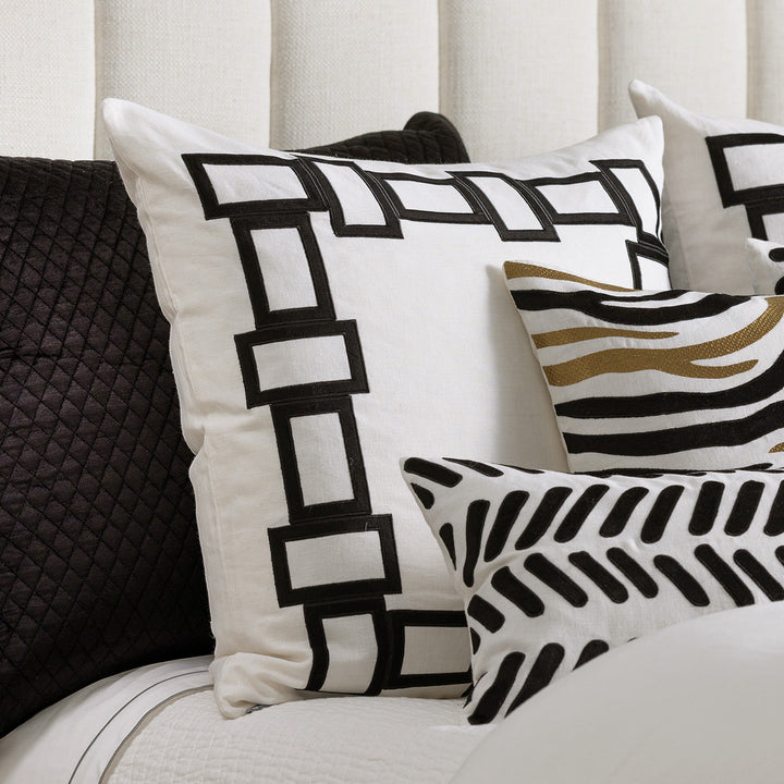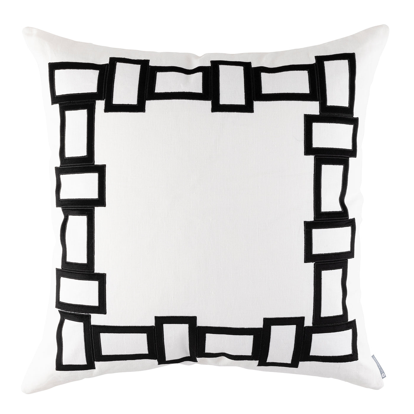 The Peru European Border Pillow is made with White Linen and Black Appliqu.