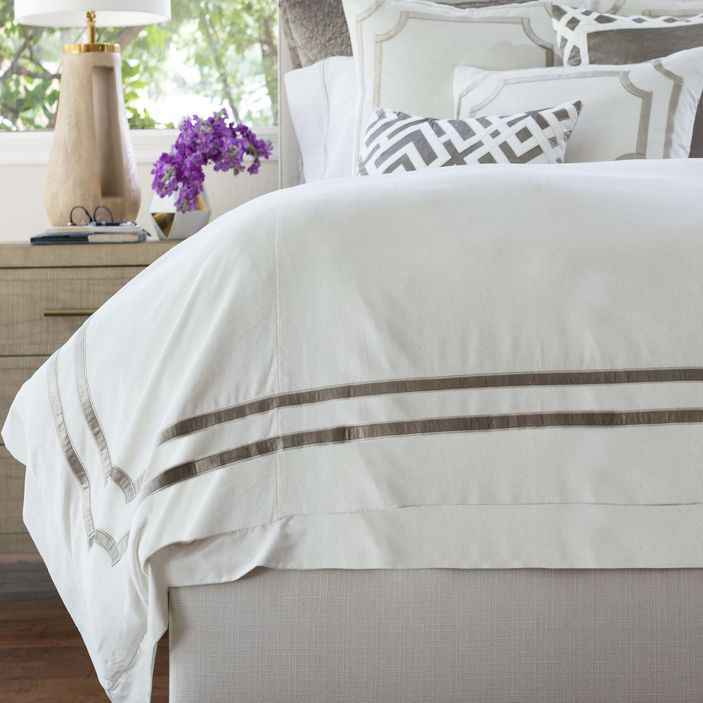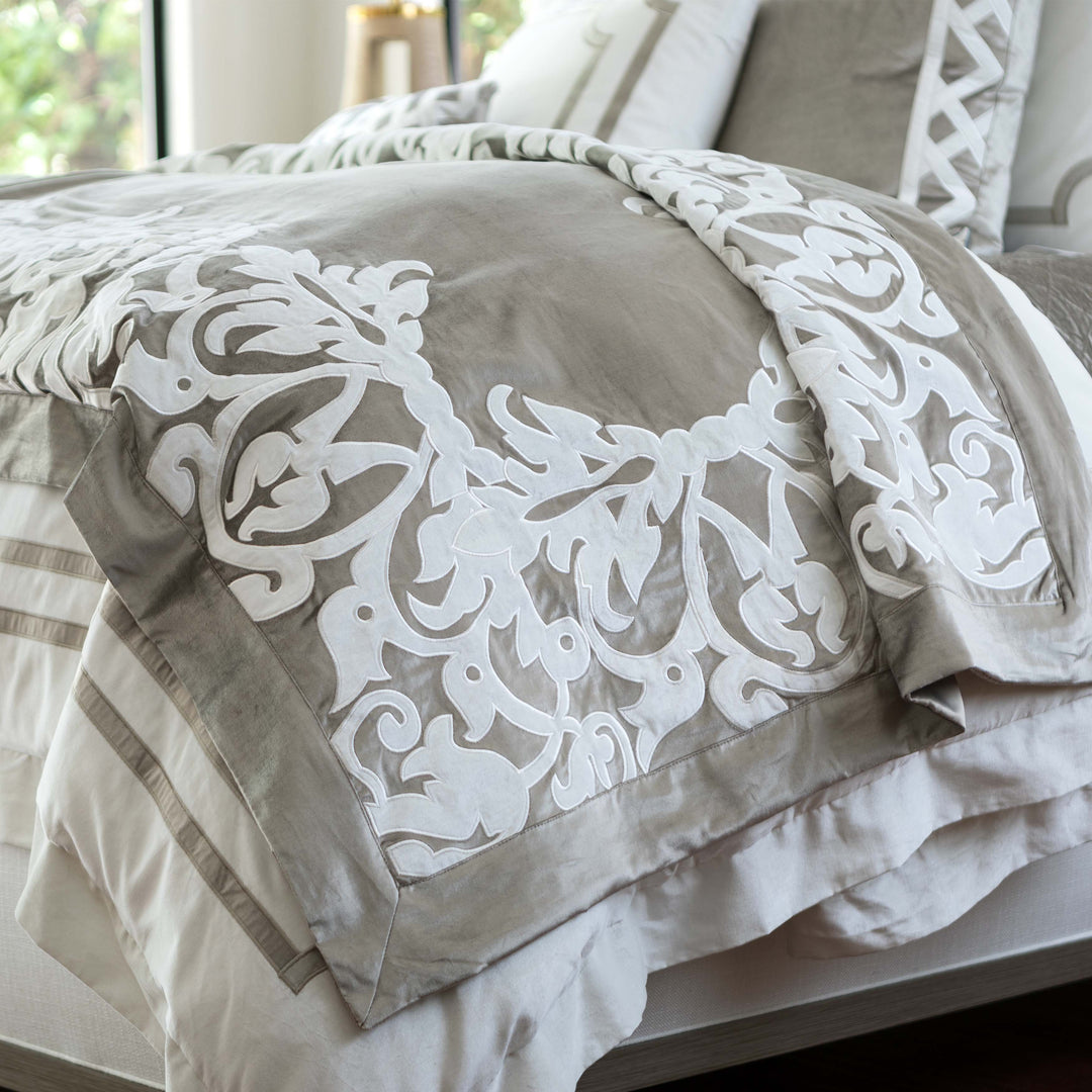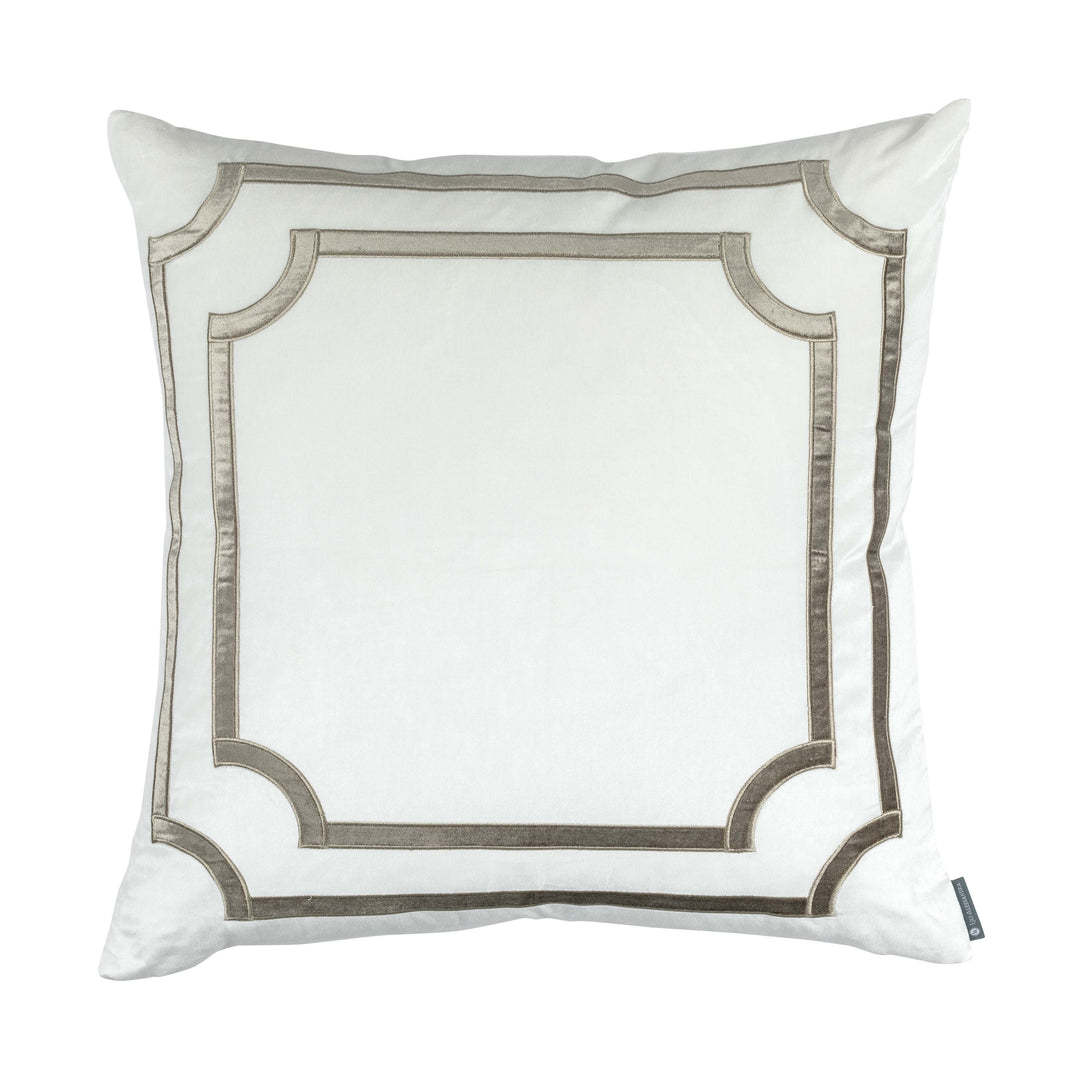 The Karl Square Pillow is made with Fawn Matte Velvet and Ivory Matte Velvet Appliqué. A pillow insert is included.