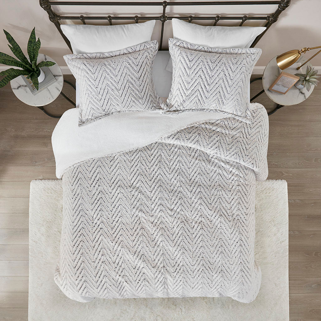 Add a casual and irresistibly soft touch to your bedroom with Madison Park’s Adelyn Ultra Plush duvet cover Set. Brushed long fur on the face of the duvet cover flaunts a chevron pattern that is highlighted by darker shades to create additional depth. Matching shams spreads the ultra-soft texture to the head of the bed and features a two inch flange for added charm. This bedding set is also OEKO-TEX certified, meaning it does not contain any harmful substances or chemicals to ensure quality comfort and wellness. A zipper closure secures a padded insert within the duvet cover and inside corner ties prevent it from shifting. Machine washable for easy care, this duvet cover set makes a stunning addition to your home.