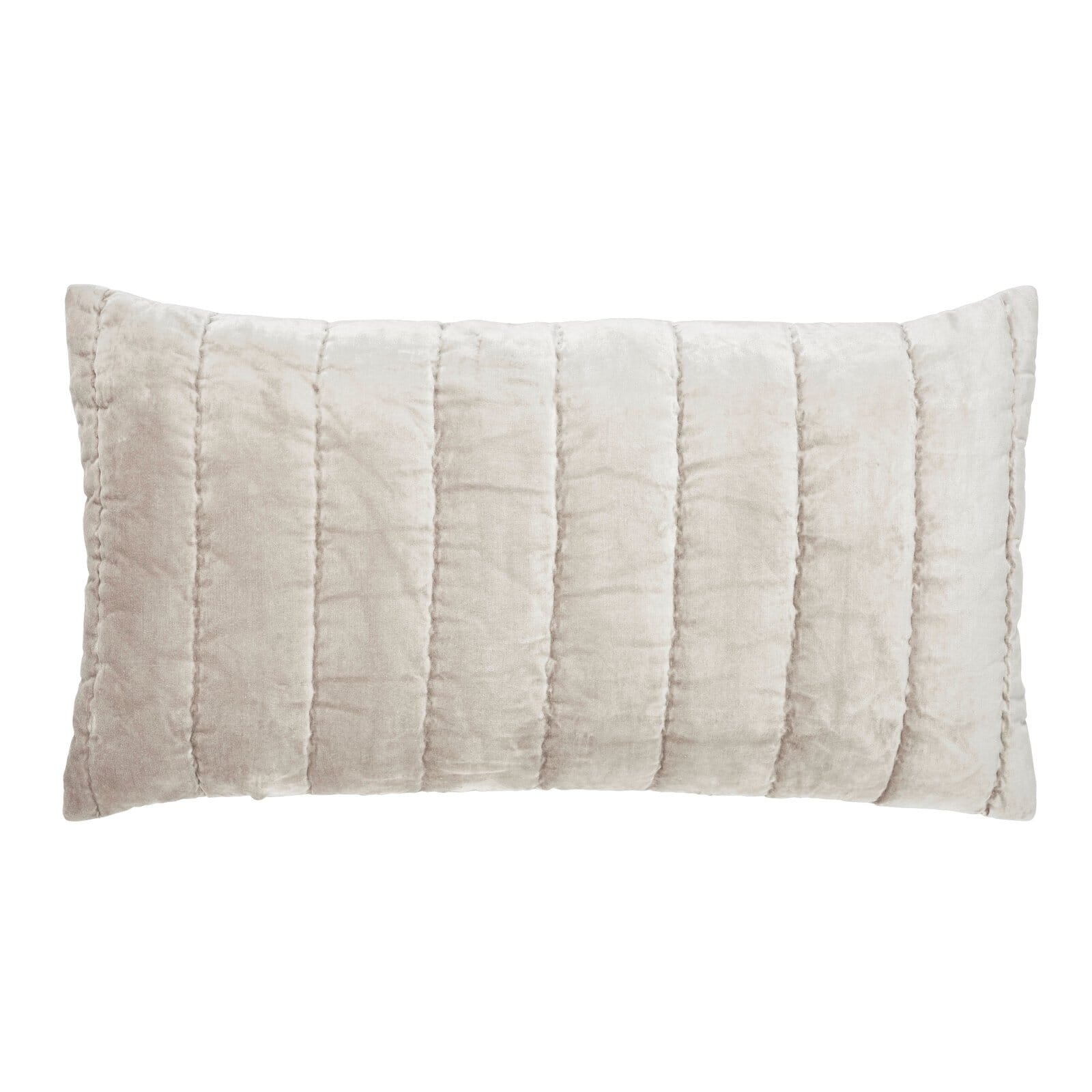 Artfully hand quilted, the quilt is made of fine velvet on a cotton sateen reverse, with both fabrics specially washed to add softness. Its a gorgeous choice for adding extra warmth and elegance to the bed which makes it feel lovely in the colder months and wont cause too hot in Summer. The quilt is simple but striking design features wide channel stripes, all stitched by hand. The cushion cover comes in three shapes which features wide channel stripes and a large square and small rectangle cushion cover with all over channels design.