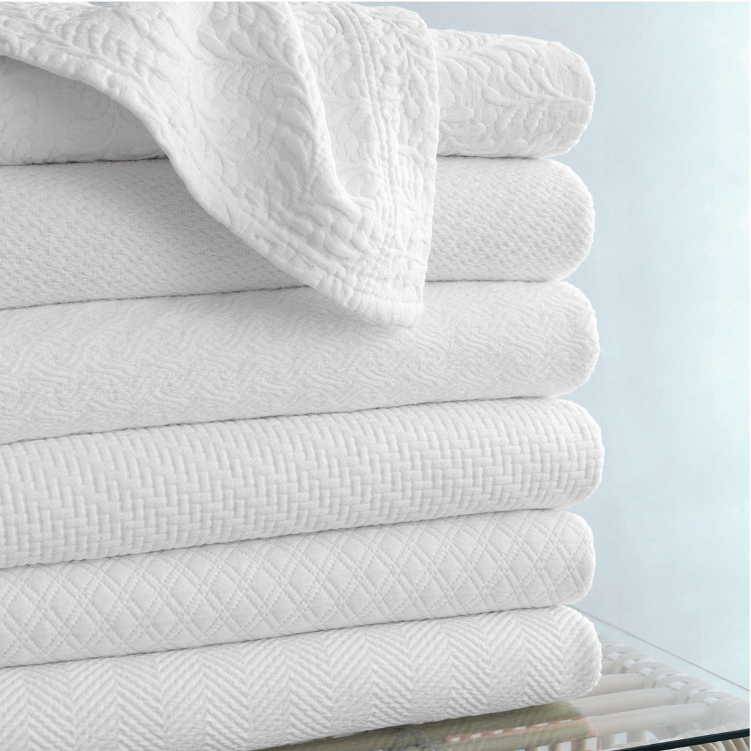 Goes-with-anything woven, textured cotton matelassé coverlet in a range of rich, saturated hues.