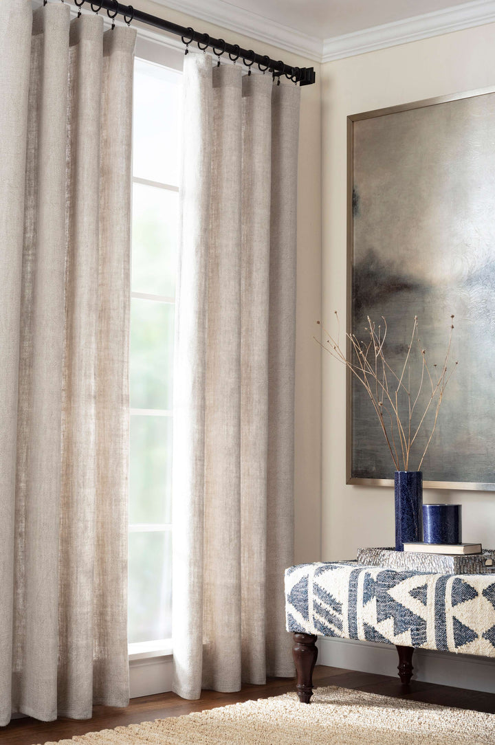 Are you ready for a refresh? These textured neutral linen curtain panels are sustainably crafted from unbleached laundered linen for a soft and sophisticatedly rustic look. Comes readily sewn with rod pockets and loops for easy installation and a casually effortless ethos, or converts to ring-top style with curtain loop rings and drapery hooks available separately.
