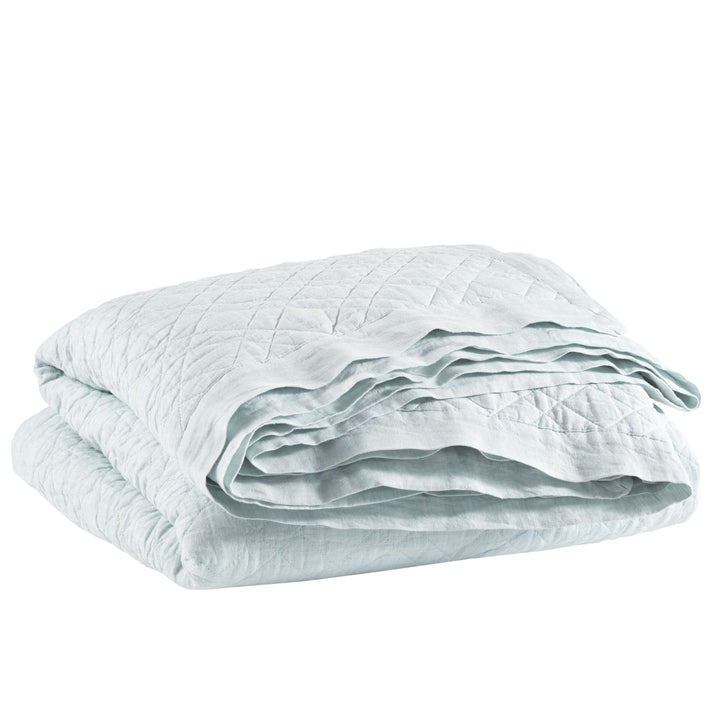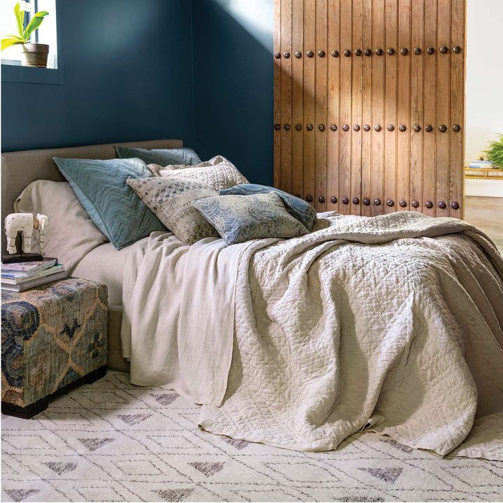 Lush linen on the front, a thin layer of batting in between and silky cotton percale of the back add up to the perfect extra layer for transitional spring nights. Traditional diamond quilting stitch keeps it all together