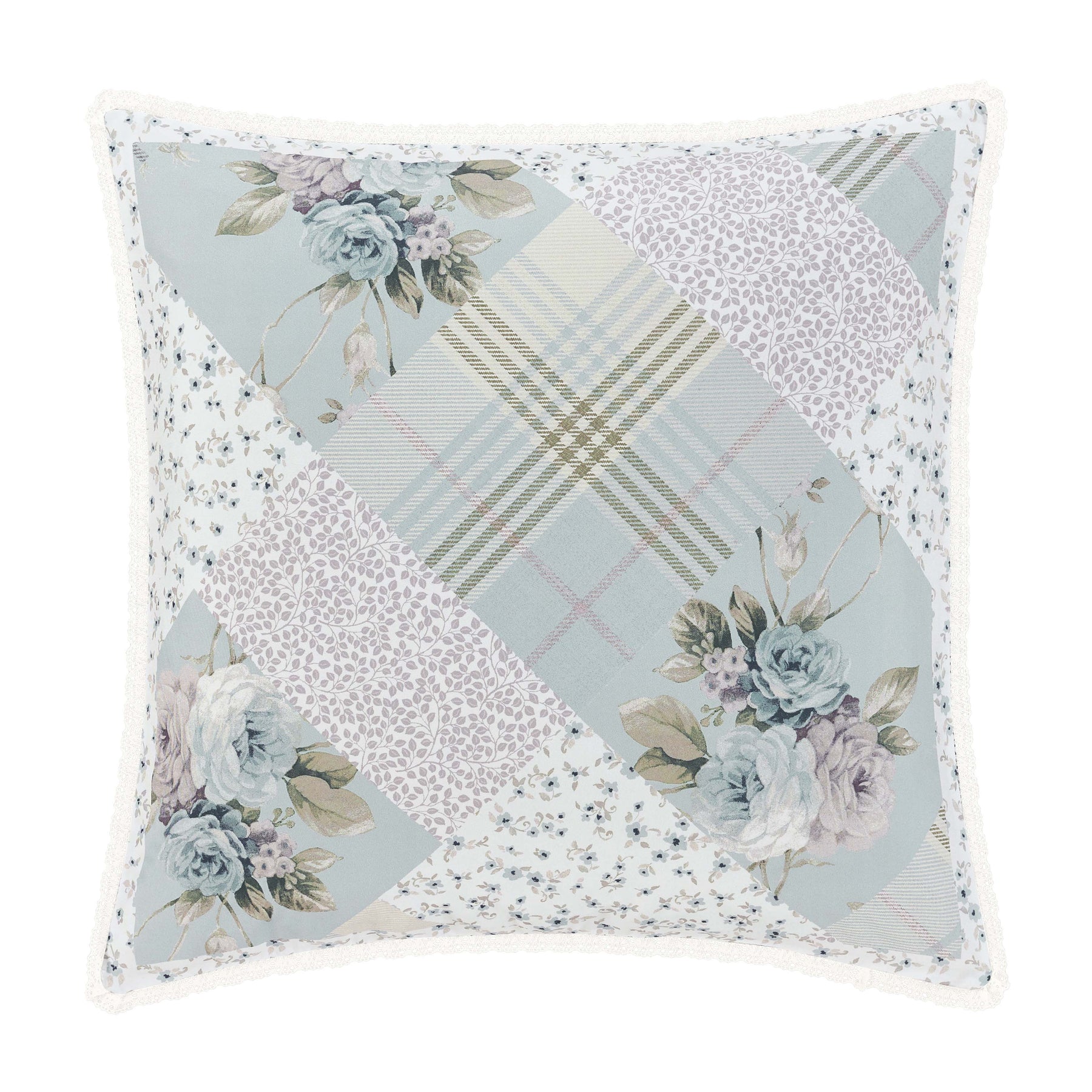 The euro sham for the Huda bedding collection is beautifully constructed with a quilted patchwork print in various shades of spa blue and white. Trimmed with delicate cotton lace for added texture and it reverses to a delicate floral print design and a hidden zipper for easy removal and cleaning. This coordinate pillow sham gives added charm and layering to the lovely Huda bedding collection (each sham sold separately).