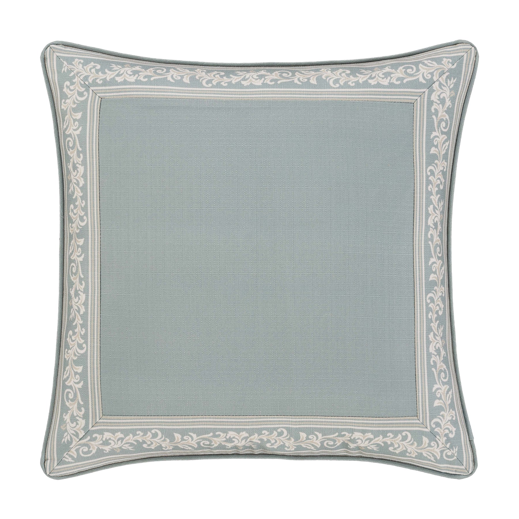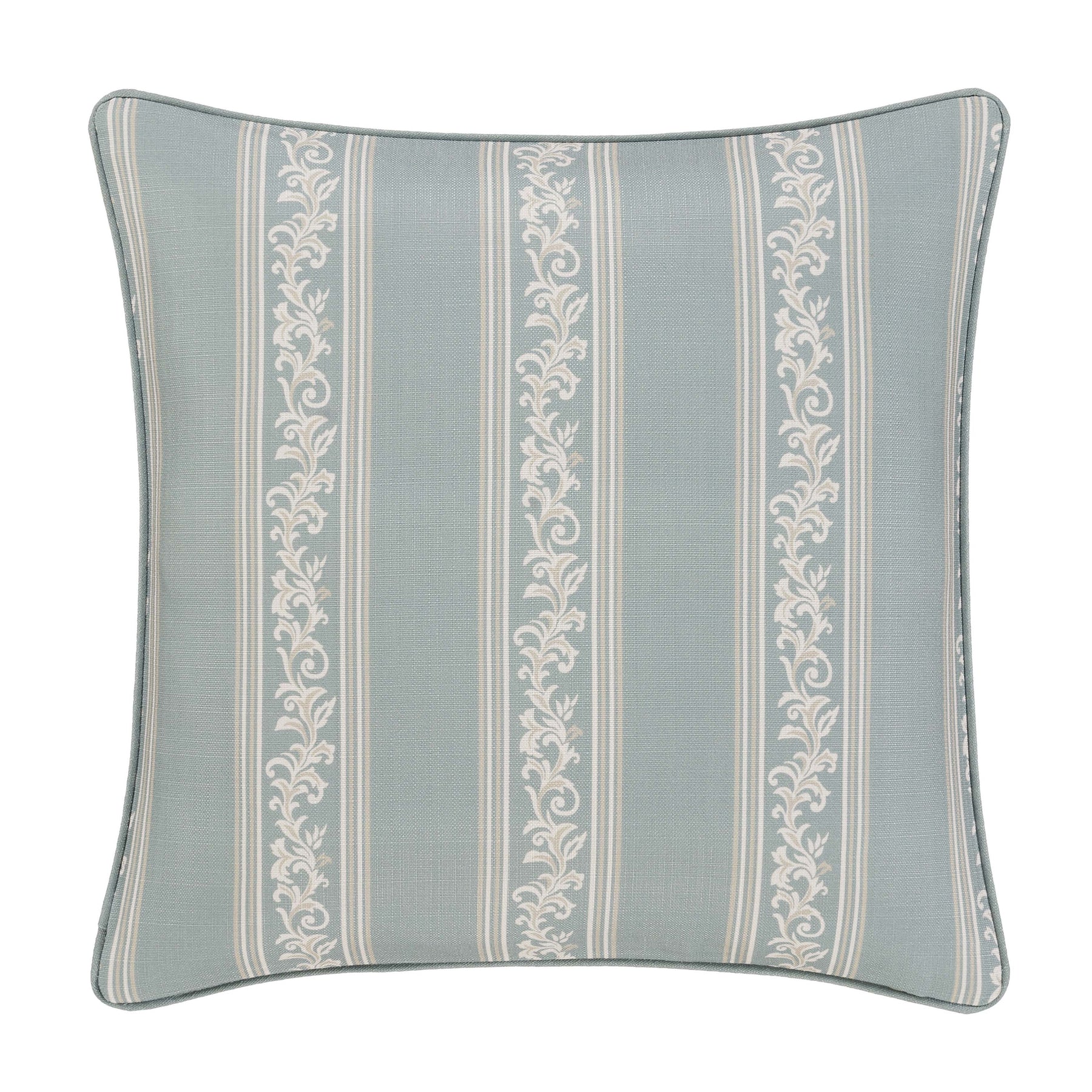 The tranquility euro sham is intricately designed with a damask stripe border in aqua, cream and gold colors. The pillow sham reverses to a coordinating aqua fabric and is finished with a self-fabric cord. Add the tranquility comforter set, throw pillows, and window collection to complete the look.