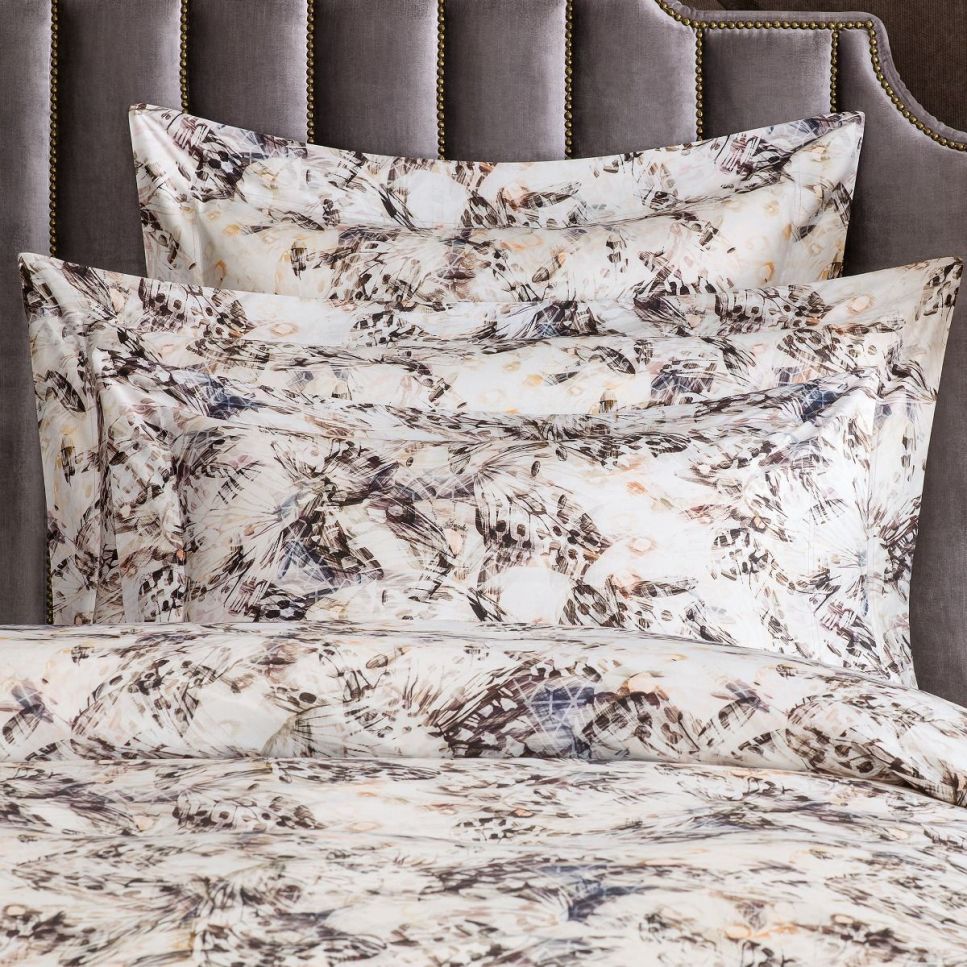 The original ornament of the bed linen Maraya is an unusual abstract print, the basis of which is warm brown shades and the beauty of the pattern on the wings of beautiful peacock-eyed butterflies. This amazing natural drawing inspired Togas designers to create the Maraya model. The back of the duvet cover and the sheet in this set are smoky pink and resemble the delicate shades of flower petals that butterflies love so much.