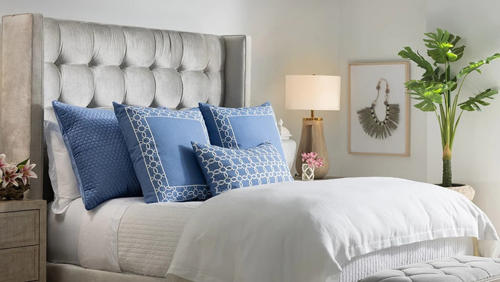 Valentina & Lynx Azure Bloom White Linen Duvet Cover